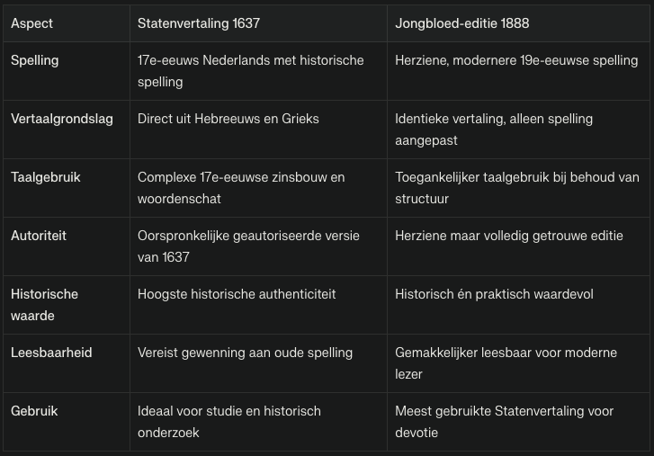 Beide versies delen dezelfde fundamentele kracht: getrouwe weergave van Gods Woord uit de oorspronkelijke grondtalen.
